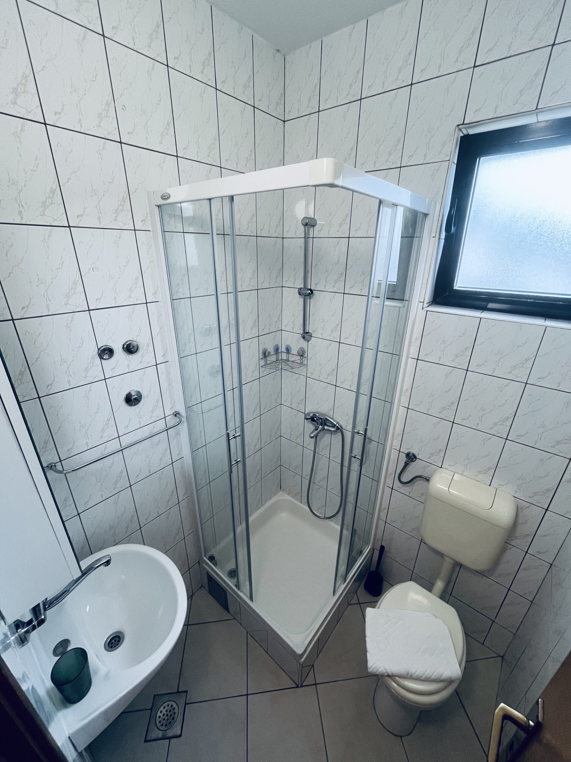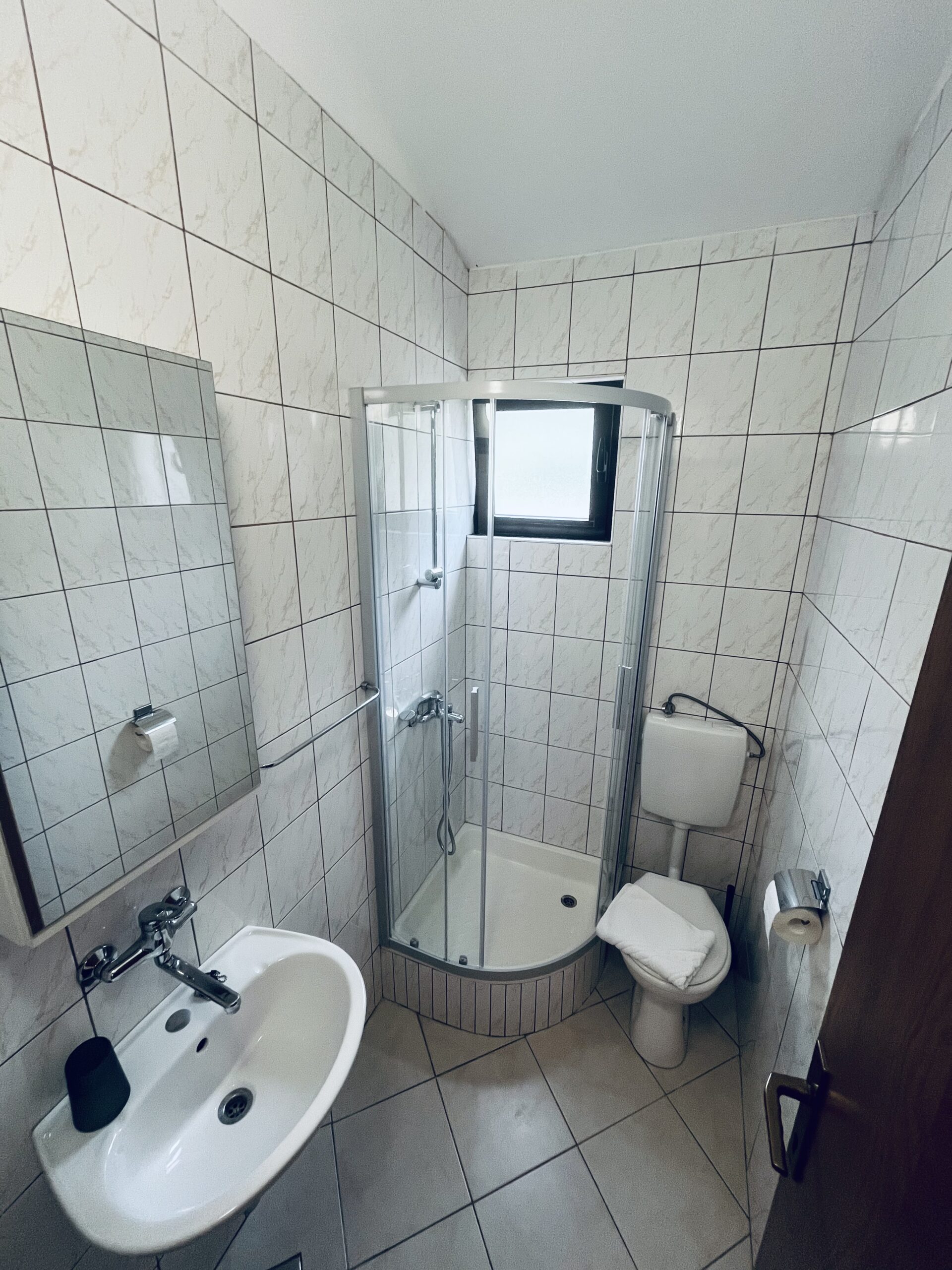 → Dvě soukromé koupelny se sprchovým koutem, WC a umyvadlem